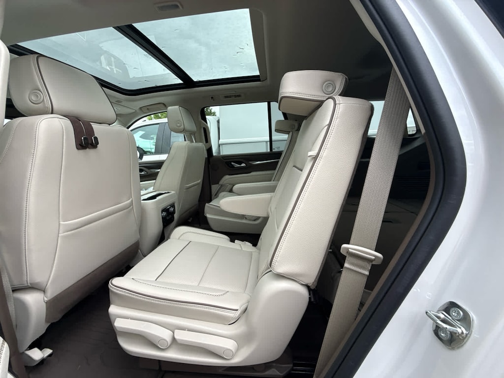 Leather Seats, Third Row Seat, Quad Bucket Seats GMC Denali with White Frost Tricoat exterior and Teak/Light Shale interior features a 8 Cylinder Engine with 420 HP at 5600 RPM*.